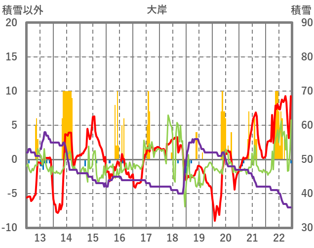 | 日 | 時 | 気温 | 降水 | 風向/風速 | 日照 | 積雪 | 降雪 |