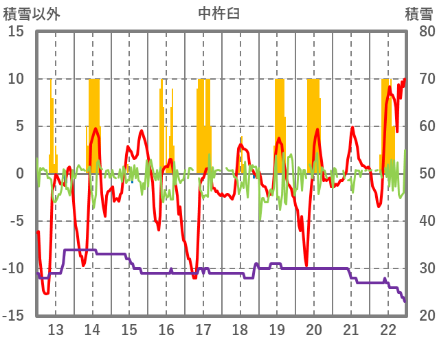| 日 | 時 | 気温 | 降水 | 風向/風速 | 日照 | 積雪 | 降雪 |