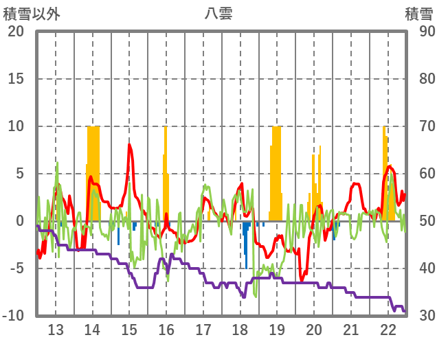 | 日 | 時 | 気温 | 降水 | 風向/風速 | 日照 | 積雪 | 降雪 |