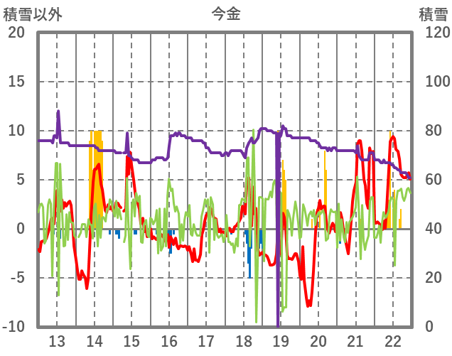 | 日 | 時 | 気温 | 降水 | 風向/風速 | 日照 | 積雪 | 降雪 |