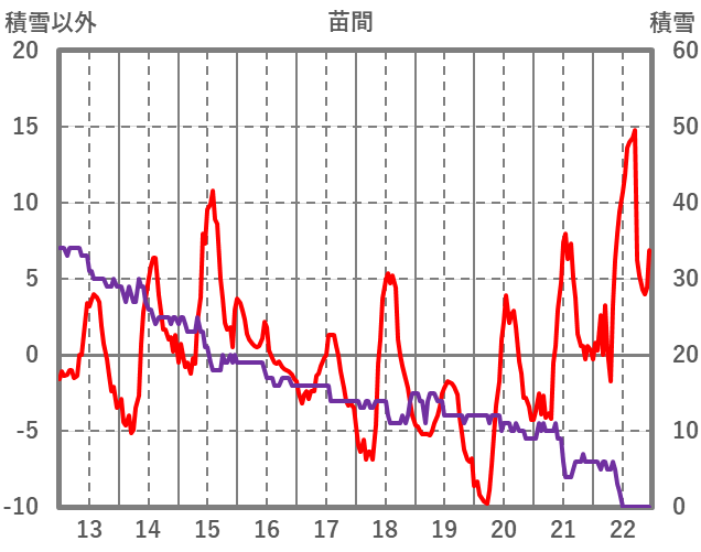 | 日 | 時 | 気温 | 降水 | 風向/風速 | 日照 | 積雪 | 降雪 |
