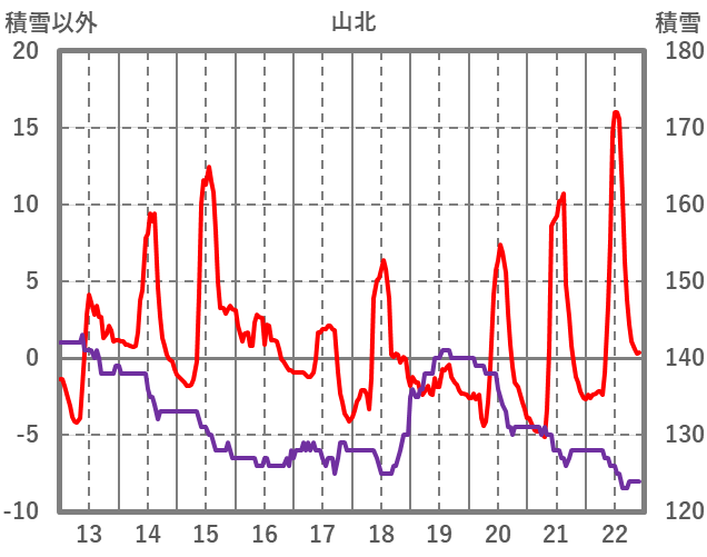| 日 | 時 | 気温 | 降水 | 風向/風速 | 日照 | 積雪 | 降雪 |