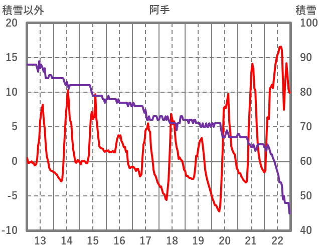 | 日 | 時 | 気温 | 降水 | 風向/風速 | 日照 | 積雪 | 降雪 |