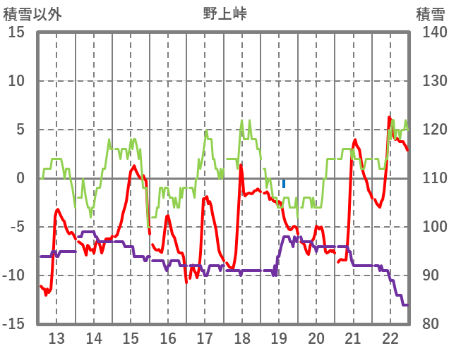 | 日 | 時 | 気温 | 降水 | 風向/風速 | 日照 | 積雪 | 降雪 |