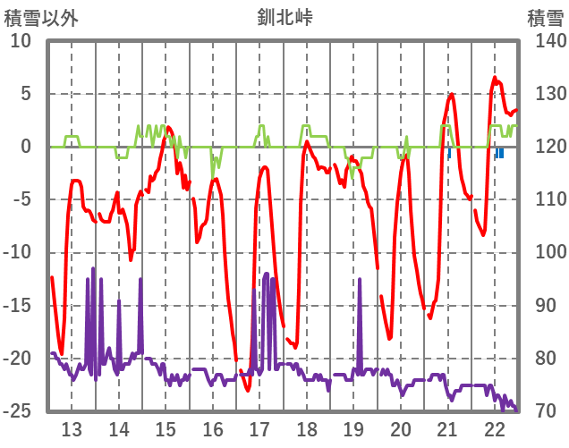 | 日 | 時 | 気温 | 降水 | 風向/風速 | 日照 | 積雪 | 降雪 |
