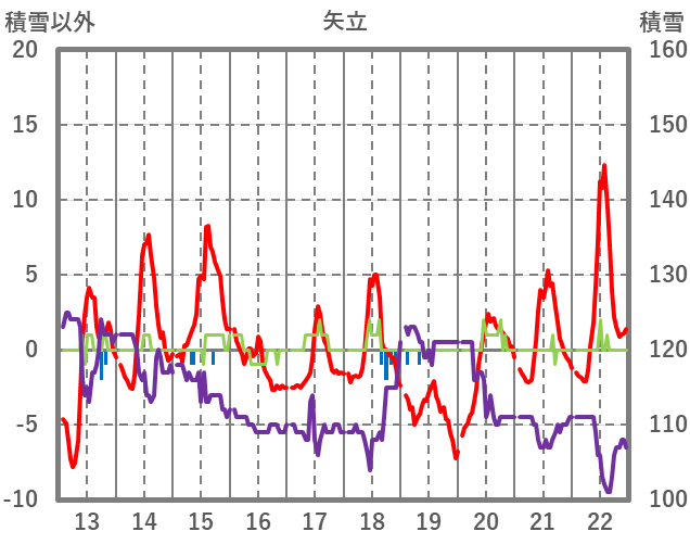 | 日 | 時 | 気温 | 降水 | 風向/風速 | 日照 | 積雪 | 降雪 |