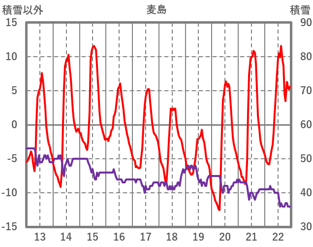 | 日 | 時 | 気温 | 降水 | 風向/風速 | 日照 | 積雪 | 降雪 |