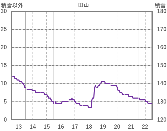 | 日 | 時 | 気温 | 降水 | 風向/風速 | 日照 | 積雪 | 降雪 |