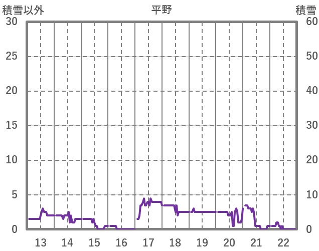 | 日 | 時 | 気温 | 降水 | 風向/風速 | 日照 | 積雪 | 降雪 |