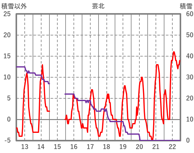 | 日 | 時 | 気温 | 降水 | 風向/風速 | 日照 | 積雪 | 降雪 |