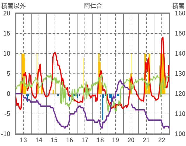 | 日 | 時 | 気温 | 降水 | 風向/風速 | 日照 | 積雪 | 降雪 |