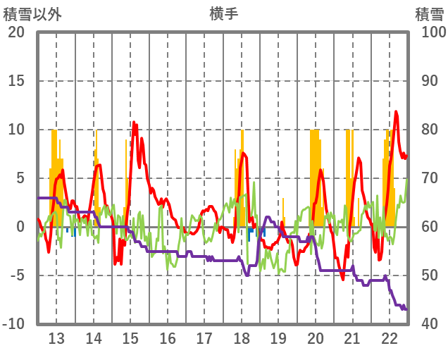 | 日 | 時 | 気温 | 降水 | 風向/風速 | 日照 | 積雪 | 降雪 |