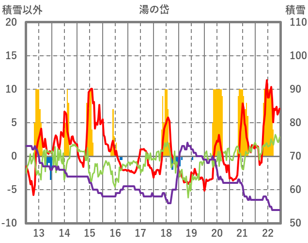 | 日 | 時 | 気温 | 降水 | 風向/風速 | 日照 | 積雪 | 降雪 |