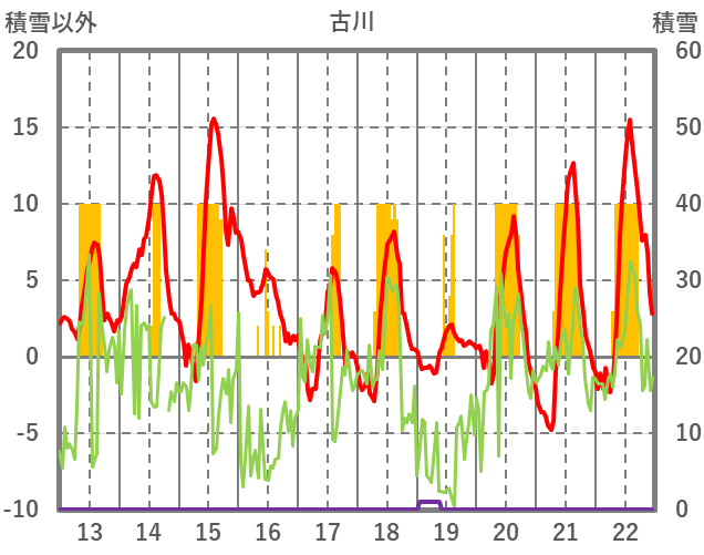 | 日 | 時 | 気温 | 降水 | 風向/風速 | 日照 | 積雪 | 降雪 |