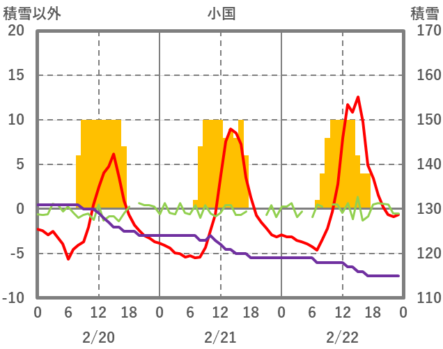 | 日 | 時 | 気温 | 降水 | 風向/風速 | 日照 | 積雪 | 降雪 |