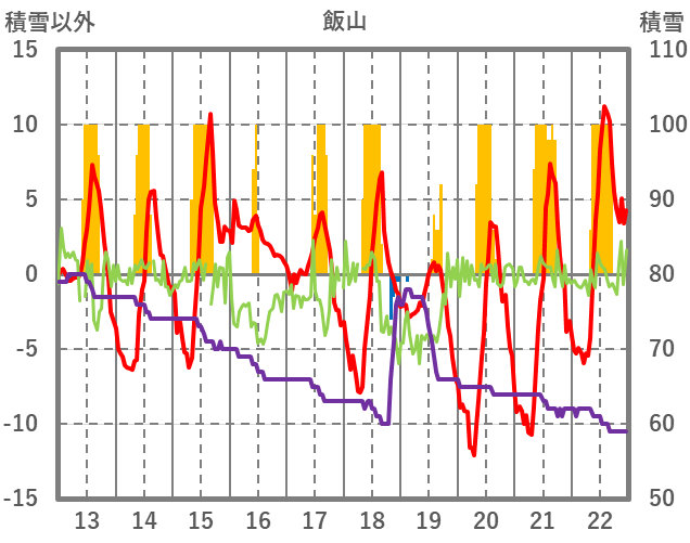 | 日 | 時 | 気温 | 降水 | 風向/風速 | 日照 | 積雪 | 降雪 |