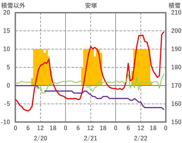 | 日 | 時 | 気温 | 降水 | 風向/風速 | 日照 | 積雪 | 降雪 |
