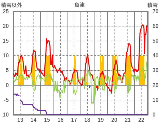 | 日 | 時 | 気温 | 降水 | 風向/風速 | 日照 | 積雪 | 降雪 |