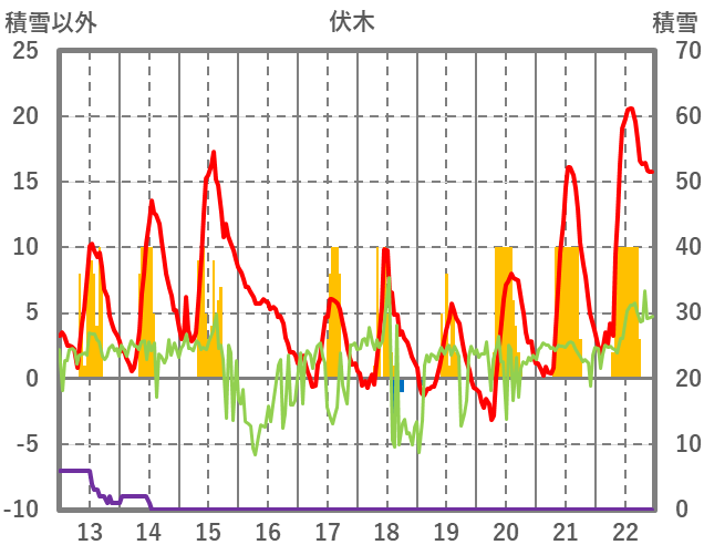 | 日 | 時 | 気温 | 降水 | 風向/風速 | 日照 | 積雪 | 降雪 |