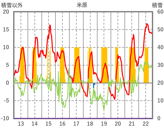| 日 | 時 | 気温 | 降水 | 風向/風速 | 日照 | 積雪 | 降雪 |