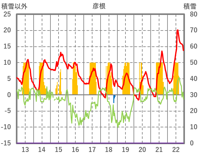 | 日 | 時 | 気温 | 降水 | 風向/風速 | 日照 | 積雪 | 降雪 |