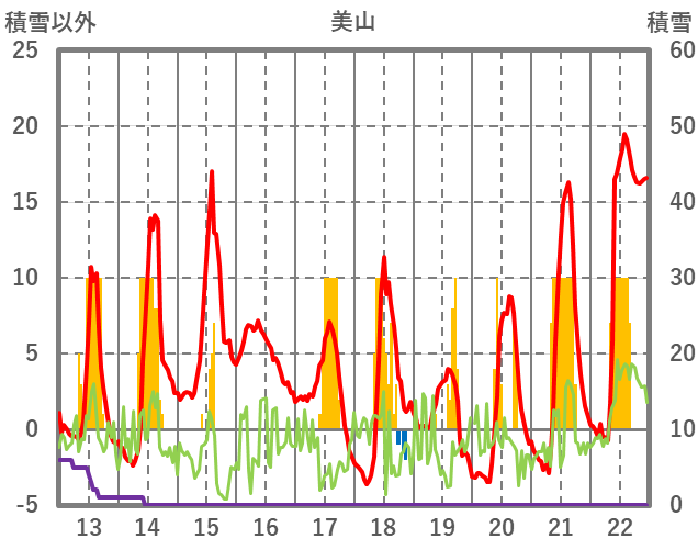 | 日 | 時 | 気温 | 降水 | 風向/風速 | 日照 | 積雪 | 降雪 |