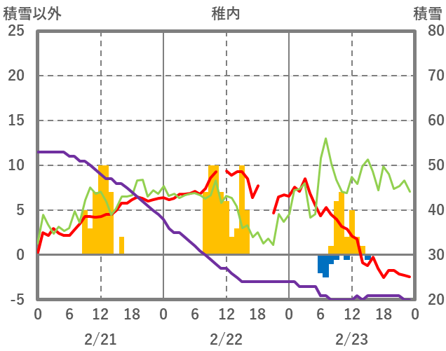 | 日 | 時 | 気温 | 降水 | 風向/風速 | 日照 | 積雪 | 降雪 |