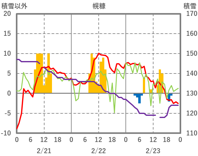 | 日 | 時 | 気温 | 降水 | 風向/風速 | 日照 | 積雪 | 降雪 |