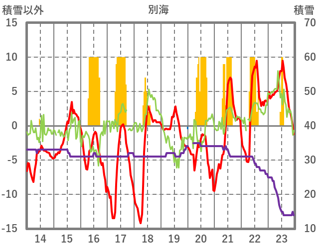 | 日 | 時 | 気温 | 降水 | 風向/風速 | 日照 | 積雪 | 降雪 |