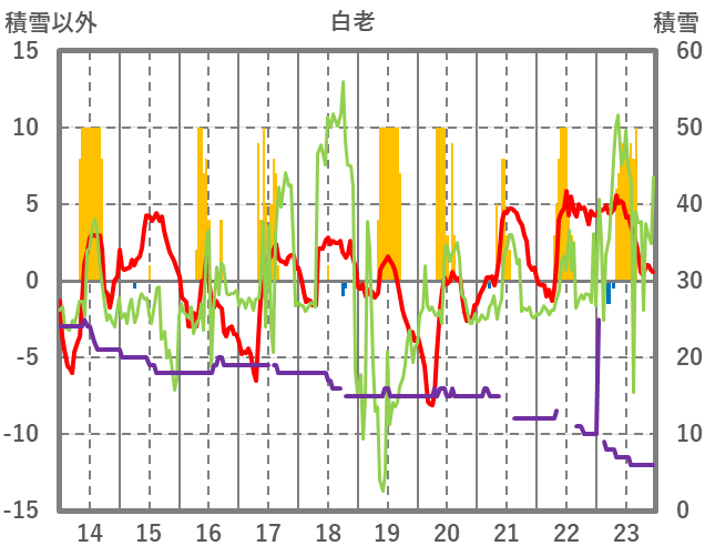 | 日 | 時 | 気温 | 降水 | 風向/風速 | 日照 | 積雪 | 降雪 |