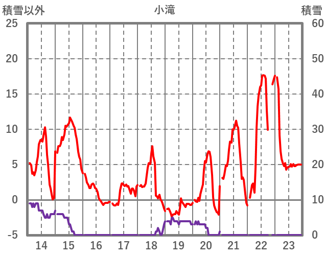 | 日 | 時 | 気温 | 降水 | 風向/風速 | 日照 | 積雪 | 降雪 |