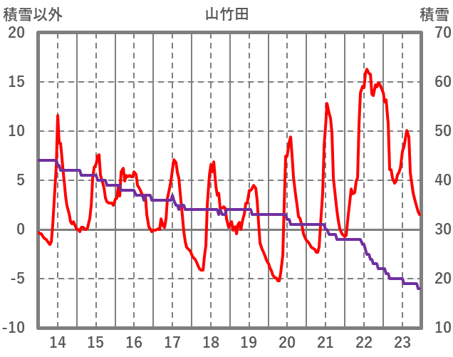 | 日 | 時 | 気温 | 降水 | 風向/風速 | 日照 | 積雪 | 降雪 |