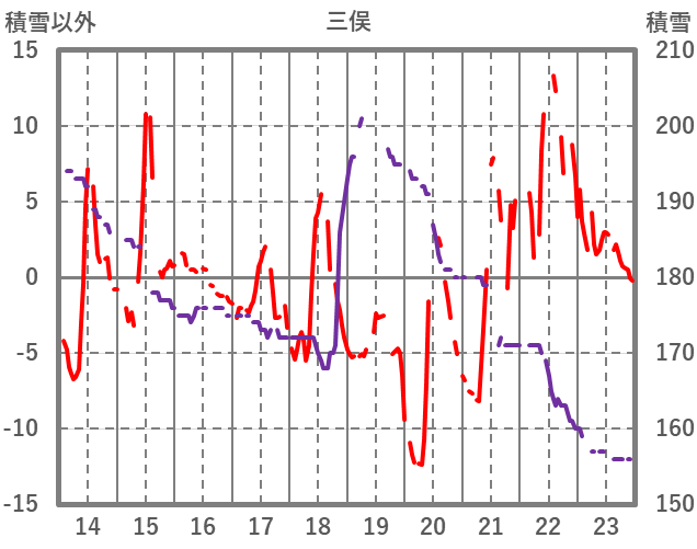 | 日 | 時 | 気温 | 降水 | 風向/風速 | 日照 | 積雪 | 降雪 |