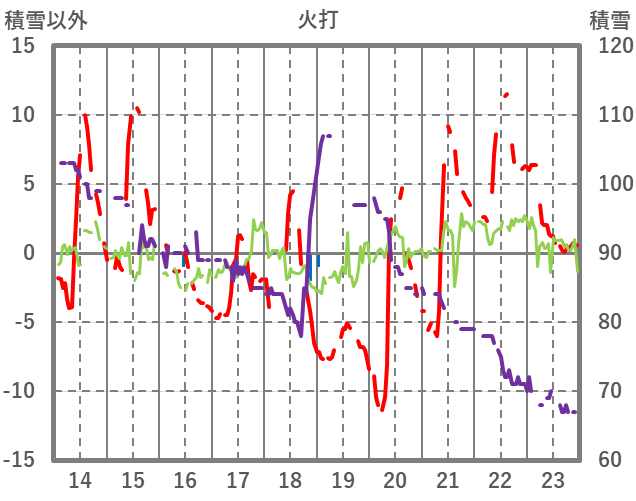 | 日 | 時 | 気温 | 降水 | 風向/風速 | 日照 | 積雪 | 降雪 |