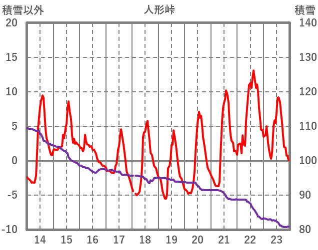 | 日 | 時 | 気温 | 降水 | 風向/風速 | 日照 | 積雪 | 降雪 |