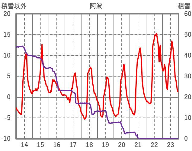 | 日 | 時 | 気温 | 降水 | 風向/風速 | 日照 | 積雪 | 降雪 |