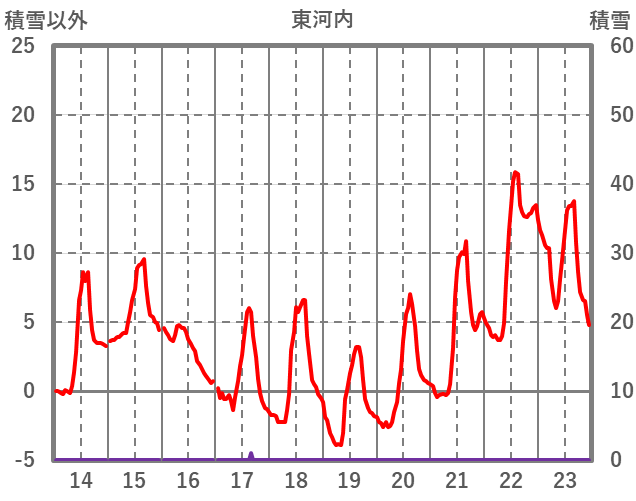 | 日 | 時 | 気温 | 降水 | 風向/風速 | 日照 | 積雪 | 降雪 |