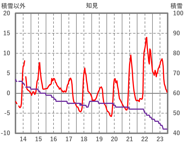 | 日 | 時 | 気温 | 降水 | 風向/風速 | 日照 | 積雪 | 降雪 |