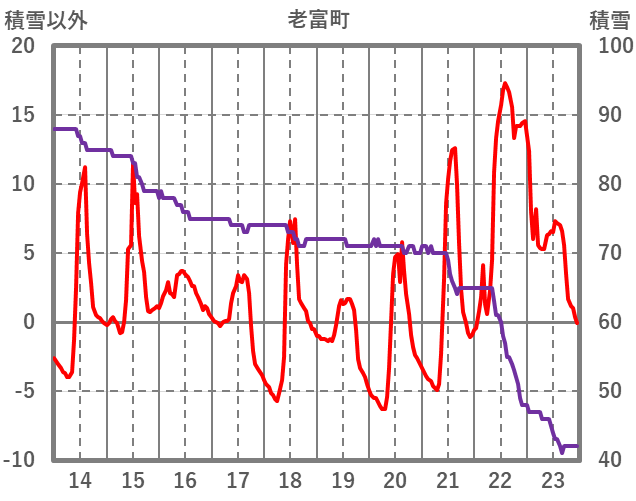 | 日 | 時 | 気温 | 降水 | 風向/風速 | 日照 | 積雪 | 降雪 |