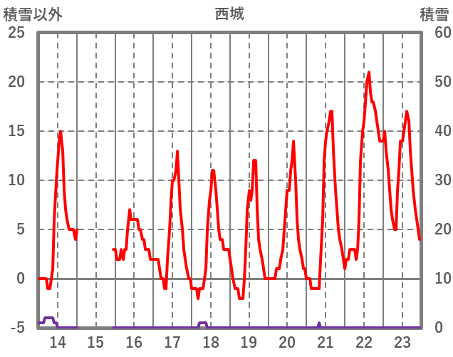 | 日 | 時 | 気温 | 降水 | 風向/風速 | 日照 | 積雪 | 降雪 |