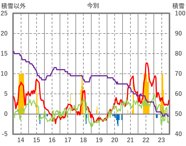 | 日 | 時 | 気温 | 降水 | 風向/風速 | 日照 | 積雪 | 降雪 |
