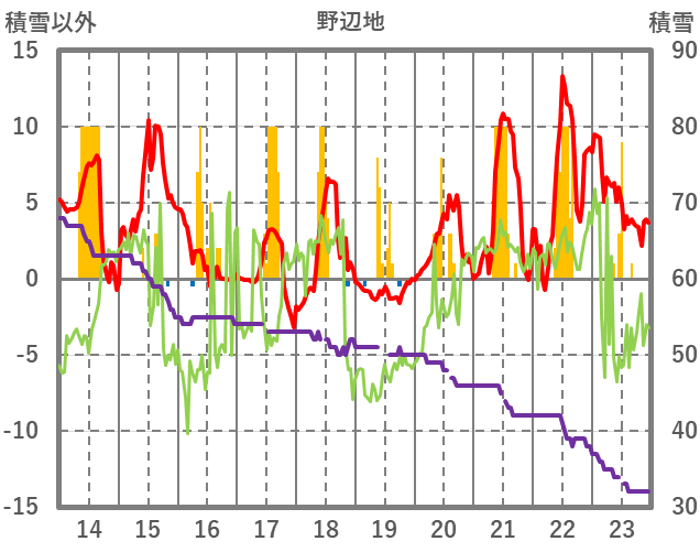| 日 | 時 | 気温 | 降水 | 風向/風速 | 日照 | 積雪 | 降雪 |