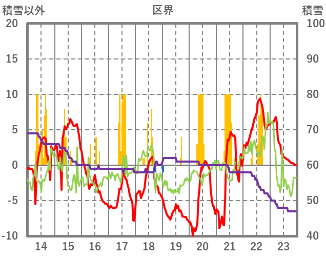 | 日 | 時 | 気温 | 降水 | 風向/風速 | 日照 | 積雪 | 降雪 |