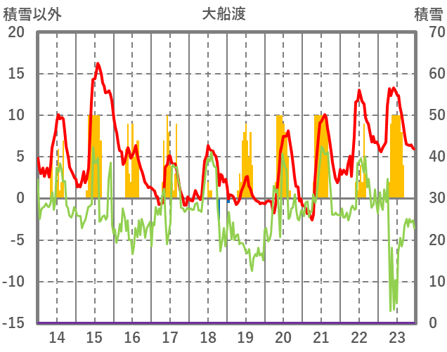 | 日 | 時 | 気温 | 降水 | 風向/風速 | 日照 | 積雪 | 降雪 |