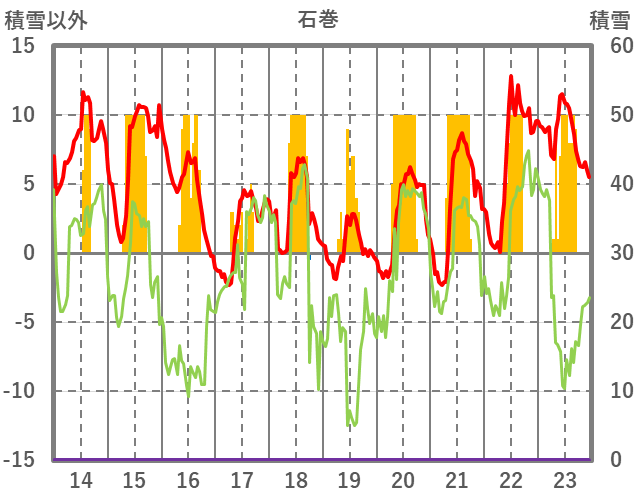 | 日 | 時 | 気温 | 降水 | 風向/風速 | 日照 | 積雪 | 降雪 |