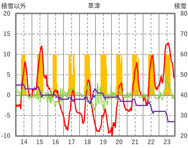 | 日 | 時 | 気温 | 降水 | 風向/風速 | 日照 | 積雪 | 降雪 |