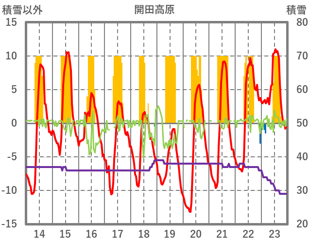 | 日 | 時 | 気温 | 降水 | 風向/風速 | 日照 | 積雪 | 降雪 |
