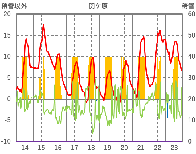 | 日 | 時 | 気温 | 降水 | 風向/風速 | 日照 | 積雪 | 降雪 |