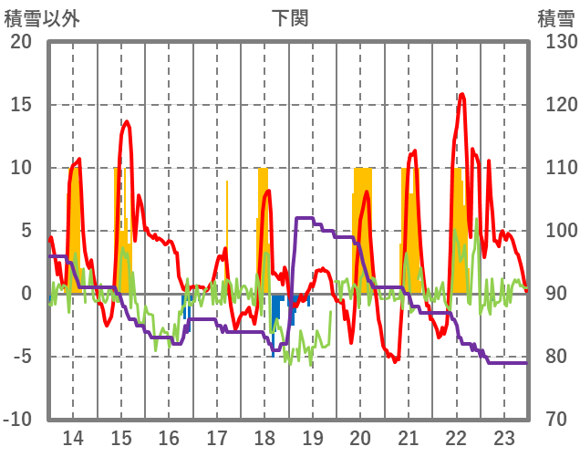 | 日 | 時 | 気温 | 降水 | 風向/風速 | 日照 | 積雪 | 降雪 |