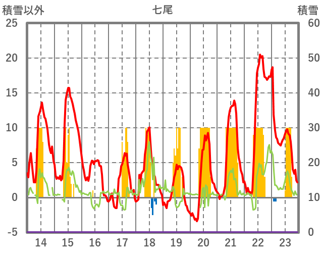 | 日 | 時 | 気温 | 降水 | 風向/風速 | 日照 | 積雪 | 降雪 |